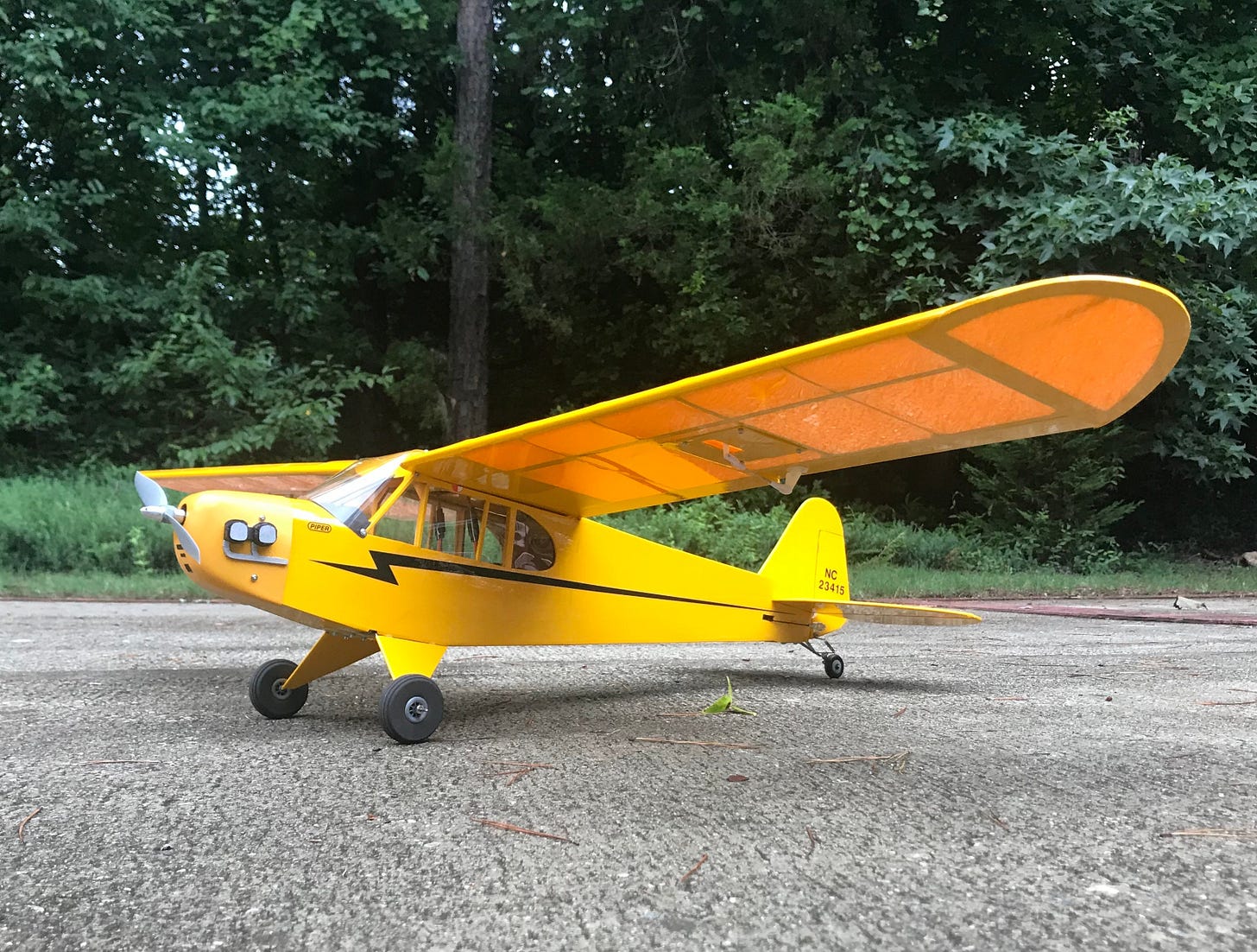 I’m not sure how but the Piper Cub I built is still flyable. It flew excellent despite being burdened with standard servos and a 4AA battery pack. The power was a Norvel .061 Big Mig engine with no throttle. I remember flying it at my other Grandpa’s farm and our dog Norsky trying to chase it into the corn fields.