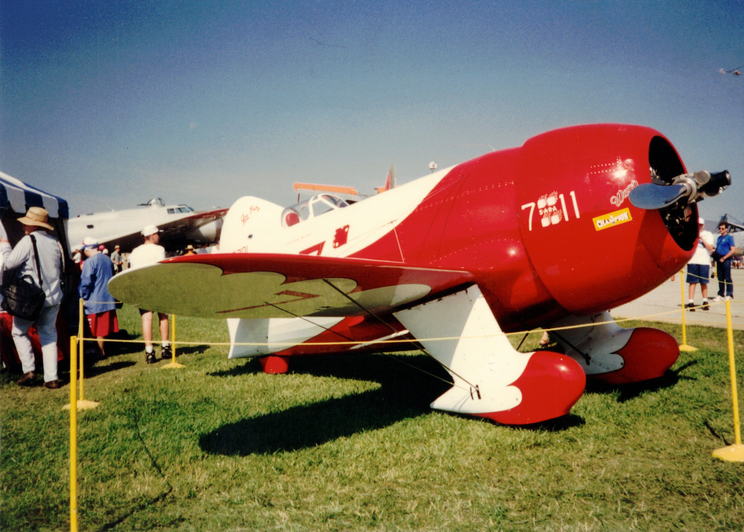 The pictures below are from the 1996 air show. The Gee Bee flew an acrobatics routine.