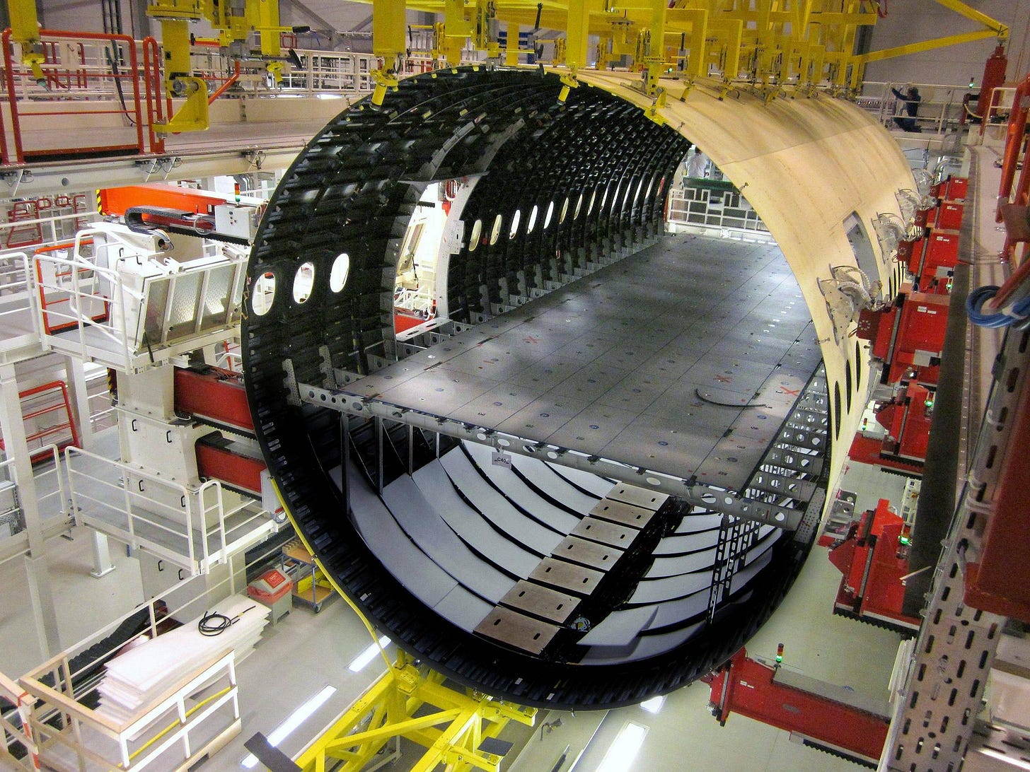 The thickness of the cylinder can be back calculated by taking the max takeoff weight of a 767-200ER and assuming a fuselage weight mass fraction similar to other wide body jetliners. The thickness of this cylinder matches up cleanly to aluminum roofing trim coils.