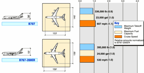 The 767s from 9/11 are not much different in size than a 707: