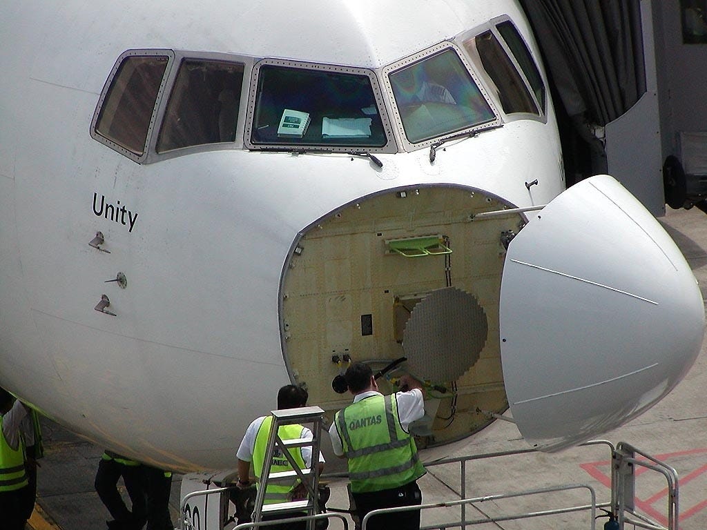 The noses of jetliners are fiberglass or similar materials that are transparent to weather radar waves: